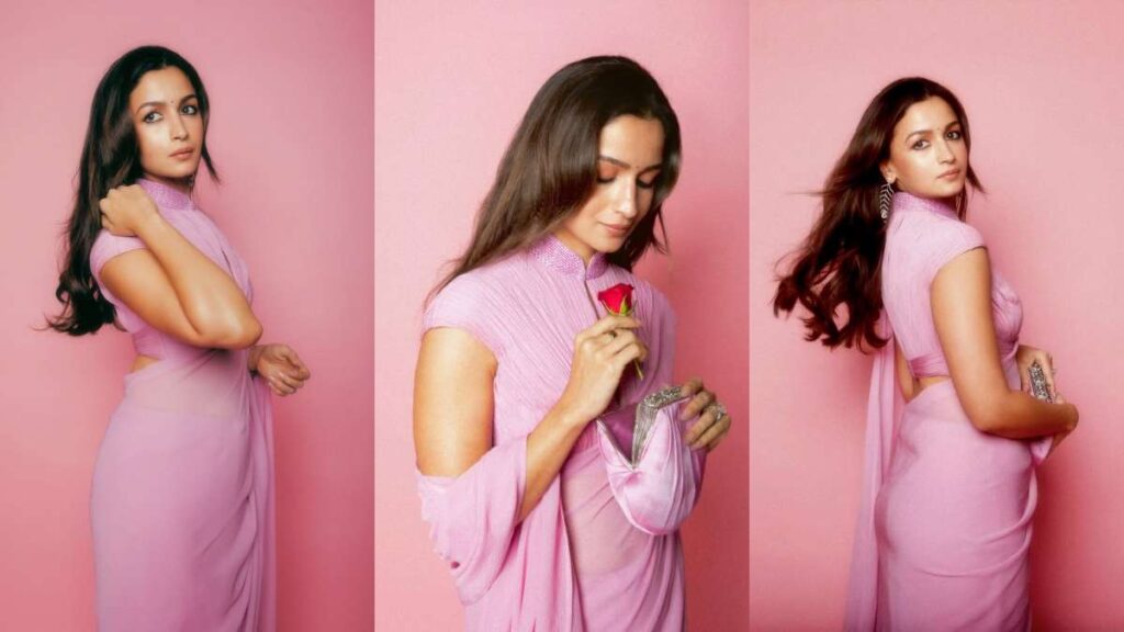 पिंक साड़ी में आलिया