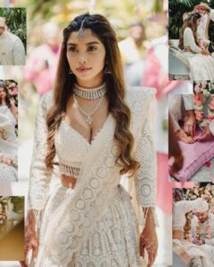 पिया ने इस मौके पर व्हाइट कलर का खूबसूरत हेवी लहंगा पहना था, जिसपर काफी थ्रेड वर्क किया गया था। लहंगे पर फ्लावर और जाली पैटर्न में डिजाइन बनी हुई थी। जबकि ब्लाउज प्लंजिंग नेकलाइन और 3/4 लेंथ की स्लीव्स में बना है। वहीं लहंगा और चोली के साथ मैचिंग दुपट्टा लाइटवेट होने की वजह से कैरी करने में प्रॉब्लम नहीं हुई। इस पर पिया ने डायमंड जूलरी कैरी की थी। चोकर, एक नेकपीस, मैचिंग झुमके और मांगटीका शामिल थे और बालों को मिडिल पार्टिशन में खुला रखकर फ्लावर पैटर्न की हेयर एक्सेसरीज से सजाया था।