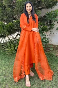 इस ईद पर आप जॉर्जेट फैब्रिक का सूट भी कैरी कर सकती हैं, जिसपर कलरफुल रेशम वर्क किया गया हो। सूट में अफगानी स्टाइल स्लीव्स हैं जो सूट के स्टाइल को इनहेंस कर सकती हैं।