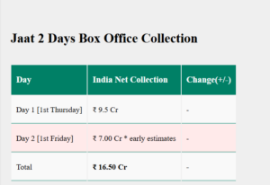बॉक्स ऑफिस पर ताजा अपडेट के अनुसार, रिलीज के दो दिन जाट ने बॉक्स ऑफिस पर ₹7 करोड़ पार करने में सफल रही है। दूसरे दिन की कमाई पहले दिन से कुछ कम रही। दोनों दिनों के कलेक्शन को मिलाकर कुल आंकड़ा ₹16.5 करोड़ है। यह देखना दिलचस्प होगा कि क्या फिल्म आने वाले दिनों में आगे बढ़ती है।